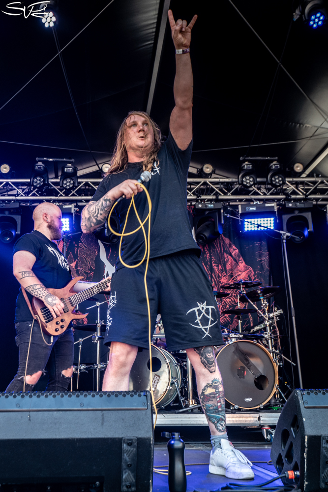 Cabal’s set was refreshing and brought a lot of positive energy to the field. Whereas some incident happened in the moshpit and some hostility amongst the participants took place it was their vocalist who did not want to have any of that and addressed them, urging them to make up and behave according moshpit etiquette. If one falls down, you pick him up and of you can’t handle it, get out. Wise words and great to see him taking action. The band continued their set and prove to be a promising name for future. One to remember.