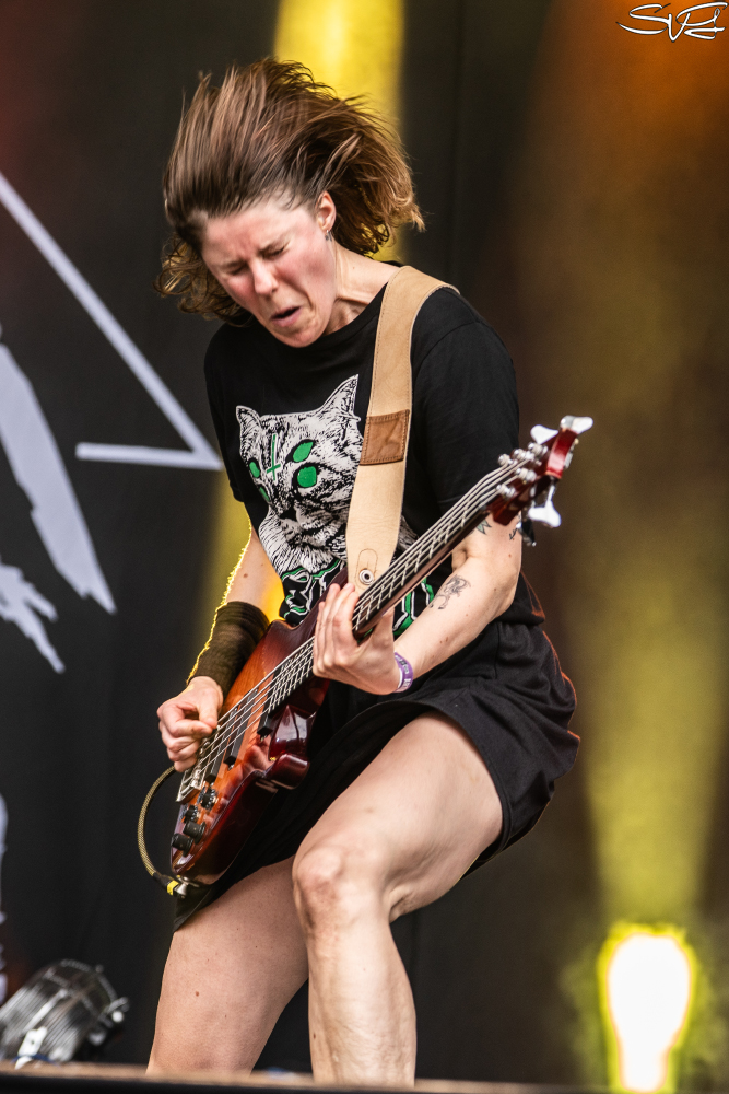 Slomosa is a band that brings what you may expect with their name. Intense and slower heaviness that has a bass that hits differently. Does not mean the guys are standing around and play their music like we see some bands do that go into this musical direction. The band lives their music onstage vividly and that makes the whole a joy to watch. It seems that even if this is not your cup of tea musically, you still could enjoy watching their set for that reason. Nice to have them here.