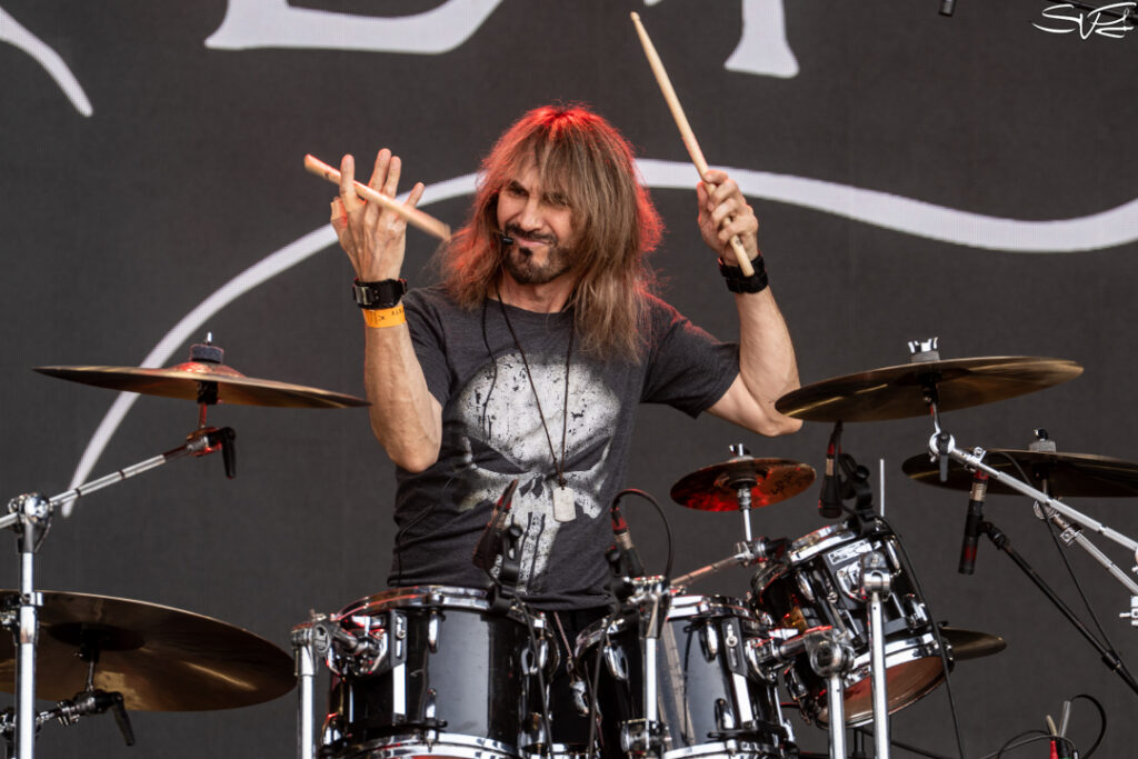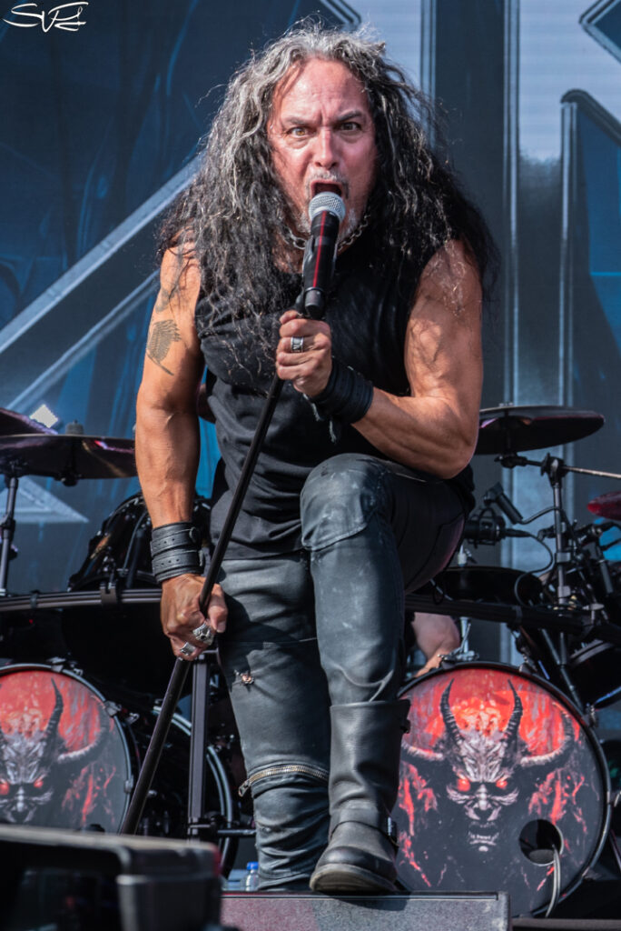 From the first riff of “Hammerhead,” the band struck a perfect balance of lightning-fast aggression and technical precision. Eric “A.K.” Knutson’s vocals were commanding, backed by razor-sharp dual guitars from Michael Gilbert and Steve Conley. The crowd erupted in moshing energy during the thrash anthems, particularly for the joyous reunion of “No Place For Disgrace.” The midday sunlight didn’t dampen the frenzy; instead, it amplified the excitement, fans clashed, arms flew, and necks strained in unison. In just under an hour, Flotsam & Jetsam delivered a ferocious, high-energy set that paid homage to their legacy while showcasing their latest arsenal.