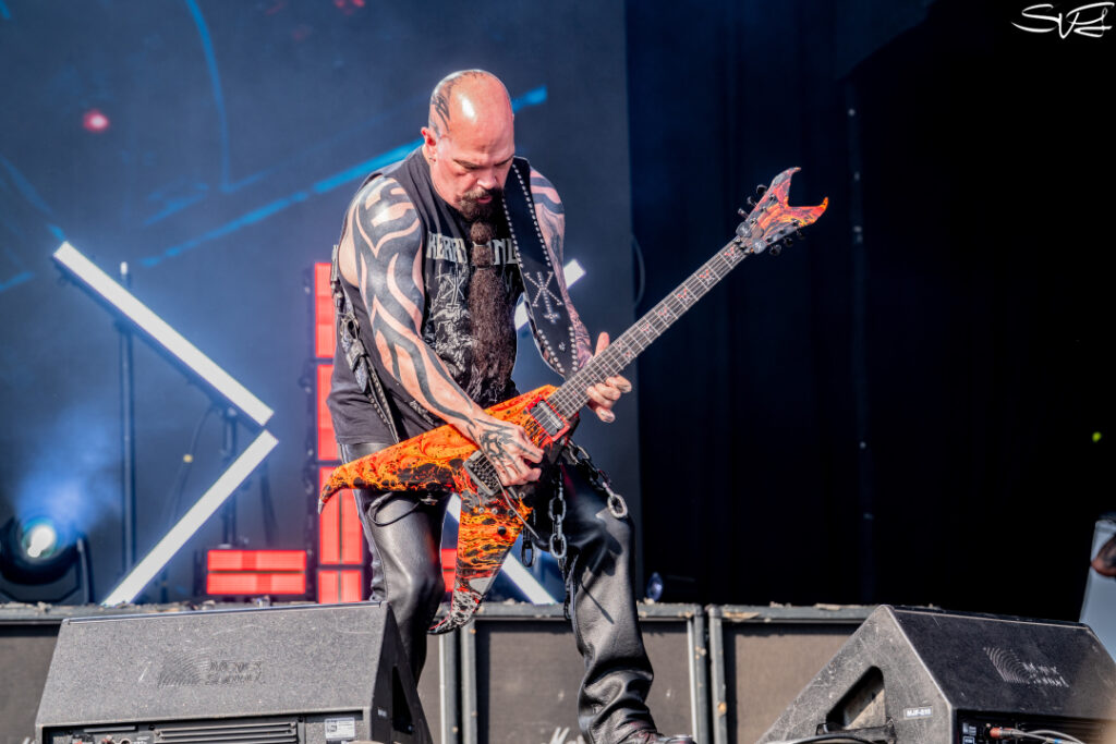 Kerry King, legendary thrash metal guitarist of Slayer, stepped into the solo spotlight with his debut album From Hell I Rise, released in 2024. In 2025, he brought his new band—featuring Phil Demmel (guitar), Kyle Sanders (bass), Paul Bostaph (drums), and Mark Osegueda (vocals)—to Alcatraz Festival, continuing his iconic legacy in a fresh context.
