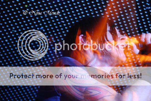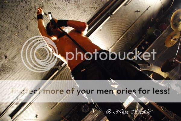 Last band of the night was Zeromancer. Zeromancer is a Norwegian Industrial rock band formed in 1999 by members of the band Seigmen. The current line-up is Alex Møklebust (vocals), Kim Ljung (bass guitar/backup vocals), Noralf Ronthi (drums) Lorry Kristiansen (programming) and Dan Heide (lead guitar). They have released four studio albums by now. The audience went wild as they entered the stage. Zeromancer began right away, the light wasn’t too great for taking pictures and they also had fog, but it did fit well to the atmosphere and the music. Everybody in the totally crowded Nachtleben was dancing and cheerin, and it was getting hotter in there as well. The sweat started running down on everybody. NO wonder the singer began to take off his shirt and soon stood on stage bare-chested. He danced a lot on stage as well and was totally into the music, almost ecstatic. Kim (bass) and Alex (vocals) talked German with the audience most of the time. The club had an amazing atmosphere during the show: timeless and as if we were all one. Many people sang along and not only to the released and popular songs. Zeromancer also played songs of their newest album. The band rocked that hard, that I was afraid the keyboarder would hit his head onto his instrument every second the way he banged behind it. Luckily he didn’t, but it was a very energetic show which lasted for more than an hour plus an encore.